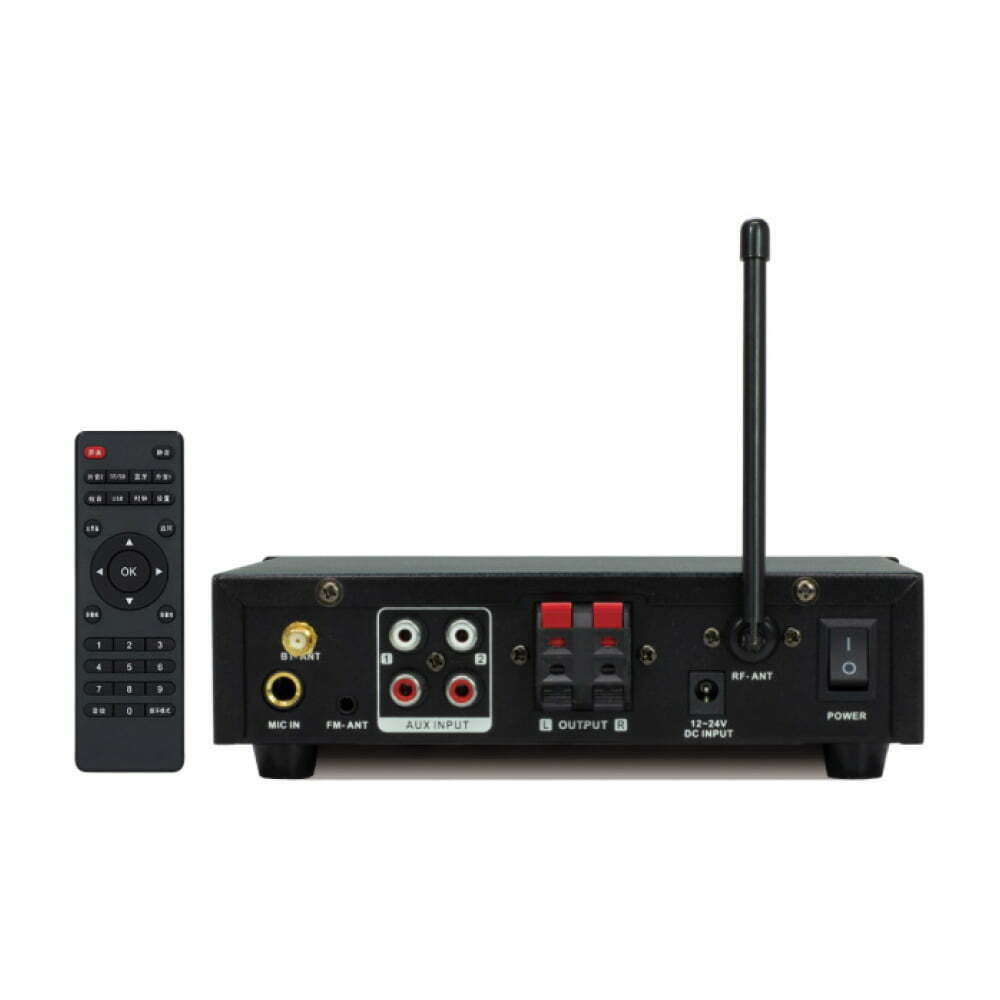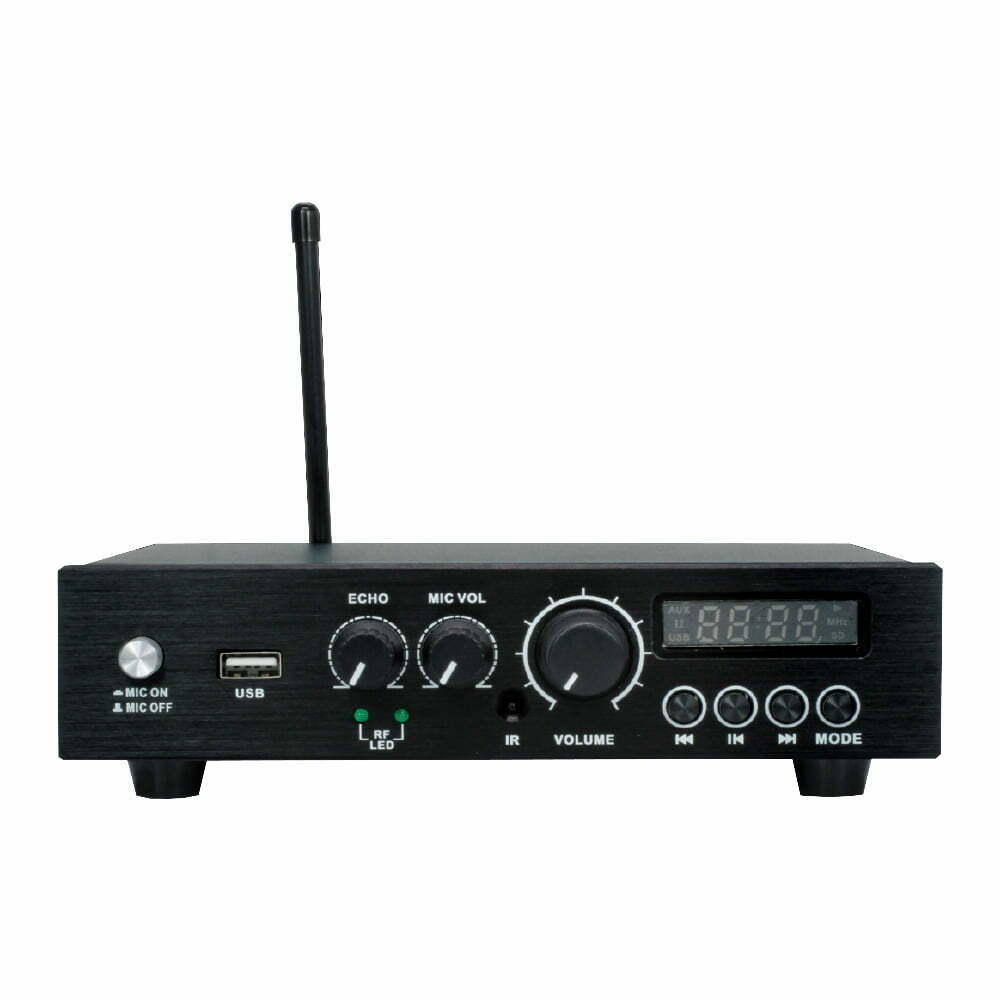 آمپلی فایر رومیزی SOS مدل JX3030 یک آمپلی فایر اهمی است که تمامی نیاز های پخش صوت در سیستم صوتی ساختمان یا خانه هوشمند شما را فراهم می کند. این دستگاه برای راه اندازی انواع اسپیکر های دیواری و سقفی بسیار مناسب است. این دستگاه دارای ورودی های USB، میکروفن، SD کارت و AUX بوده و همچنین دارای بلوتوث نیز می باشد.