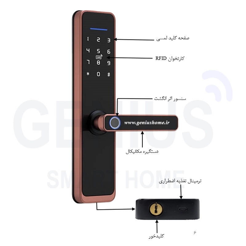نگران پایان ناگهانی شارژ باتریها نباشید. زیرا در صورت کاهش شارژ باتریها، با هر بار بازگشایی قفل، دستگیره به شما هشدار تعویض باتریها را اعلام میکند. از سوی دیگر در شرایطی که فراموش نمودید اقدام به تعویض باتریها نمایید، از طریق ترمینال تغذیه اضطراری و اتصال آنی دستگیره هوشمند به پاوربانک میتوانید قفل دستگیره هوشمند را بازگشایی نمایید.