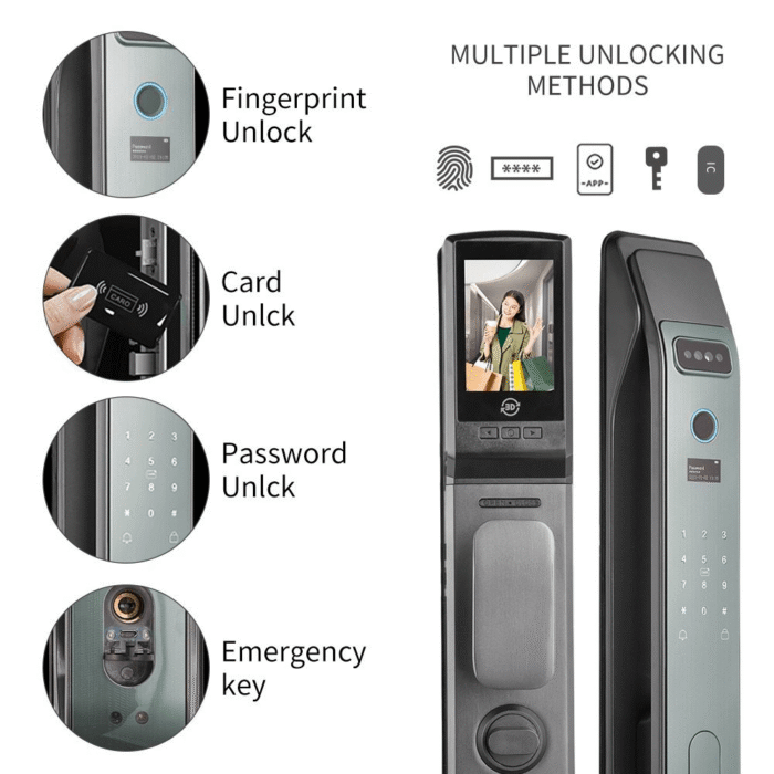 به طور معمول دستگیرههای دیجیتال با استفاده از اثر انگشت، رمز عبور، کارت و کلید اضطراری قابلیت بازگشایی قفل را دارند. اما اولین ویژگی بارز این دستگیره هوشمند، دارا بودن قابلیت تشخیص چهره سه بعدی است. با قرار گرفتن کاربر در برابر دستگیره F300 به صورت خودکار و با استفاده از سنسور حضور، دوربین تشخیص چهره دستگیره دیجیتال فعال شده و پس از احراز هویت، قفل دستگیره دیجیتال برای شما بازگشایی میگردد.