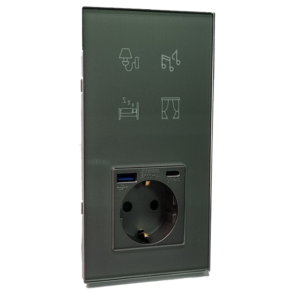 برای شارژ موبایل، لپتاپ، ساعت هوشمند و… معمولا نیاز به یک پریز در نزدیکی تخت خواب خود هستیم و معمولا به همین منظور تختخواب را در نزدیکی پریزها قرار میدهیم. از طرفی کلیدهای روشنایی نیز در سیستمهای سنتی نیز در ورود اتاقها تعبیه میشوند و در هنگام استراحت به آنها دسترسی نداریم. برای حل هردوی این مشکلات بهترین ترکیب استفاده از یک پکیج ترکیبی از کلید هوشمند لمسی به همراه پریز شارژردار است.